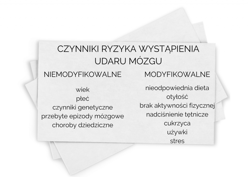 Wśród czynników zwiększających ryzyko wystąpienia udaru wymienia się czynniki modyfikowalne (te, na które mamy wpływ) oraz niemodyfikowalne.